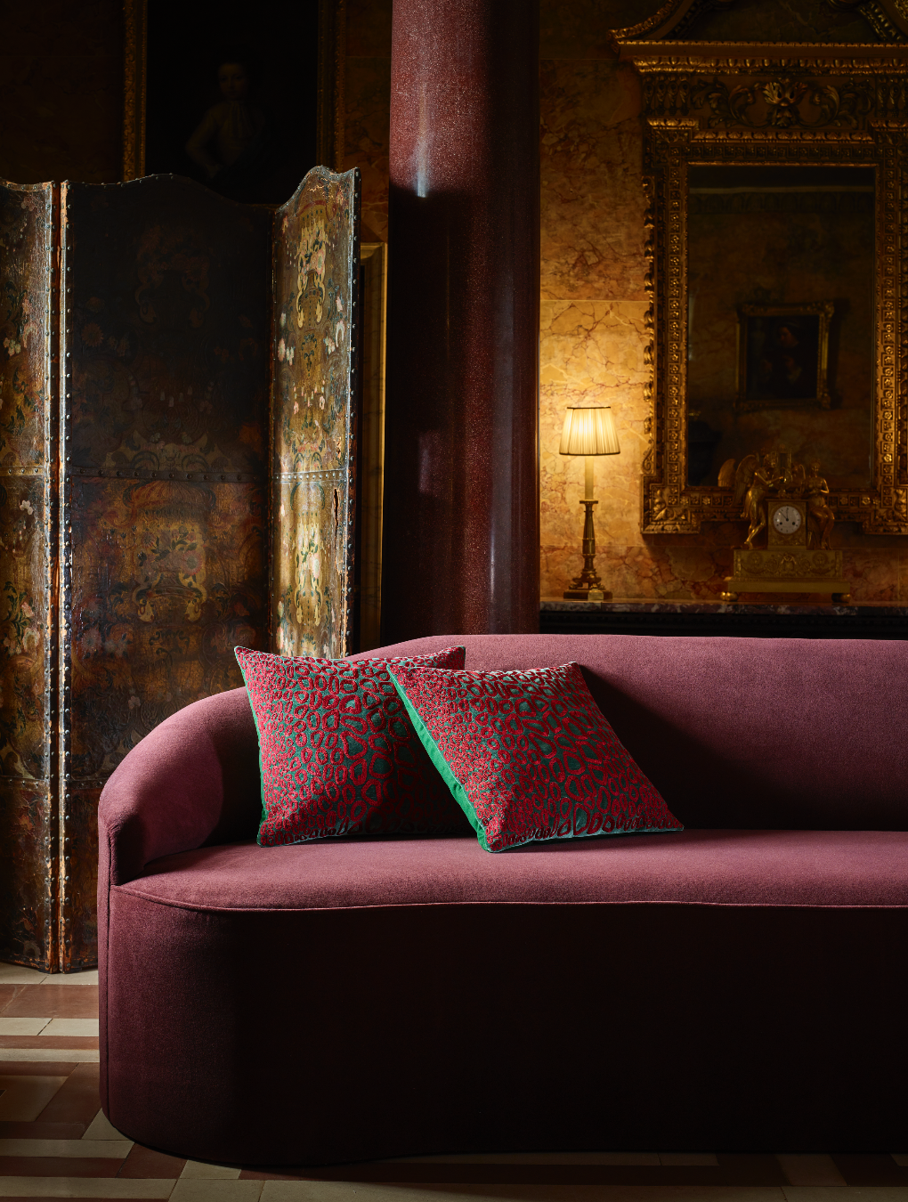 Rendered in cotton on silk velvet, our Crocodile cushion is both elegant and exotic.