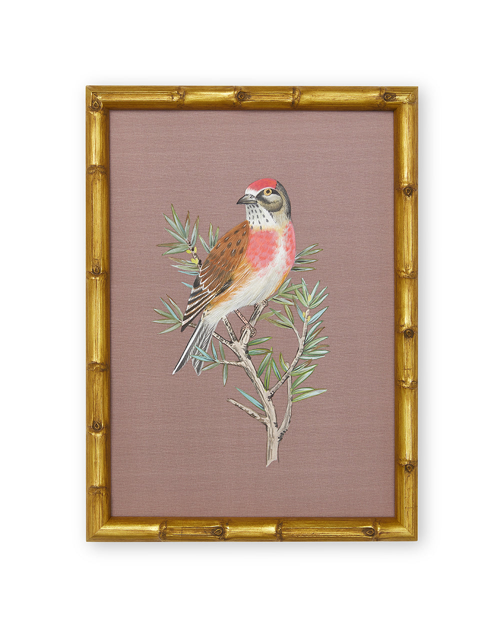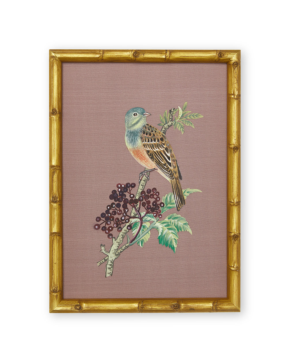 This series of original bird paintings – presented in gilded bamboo frames – is our homage to the great Giuseppe Castiglione, an Italian Jesuit missionary who served as an artist at the imperial court in 18th-century China. Giuseppe pioneered the fusion of European and Chinese traditions, a theme very close to our hearts here at Fromental.