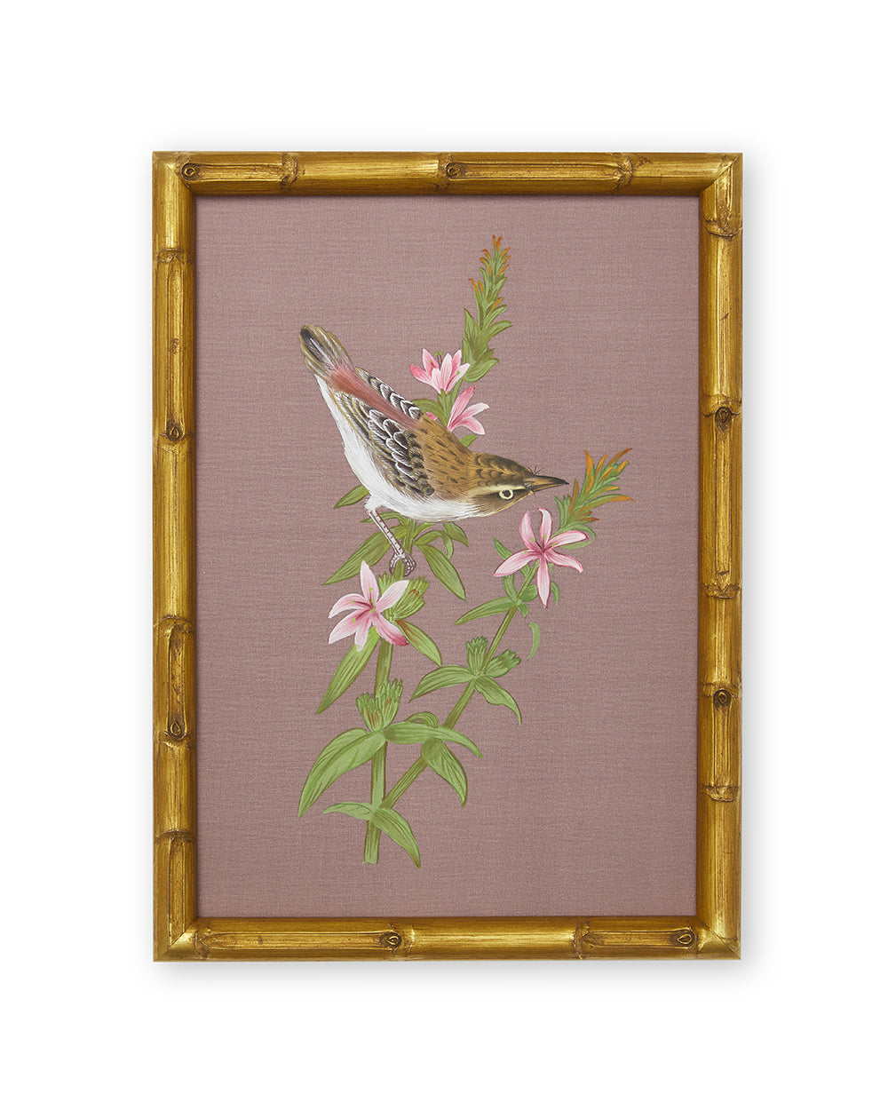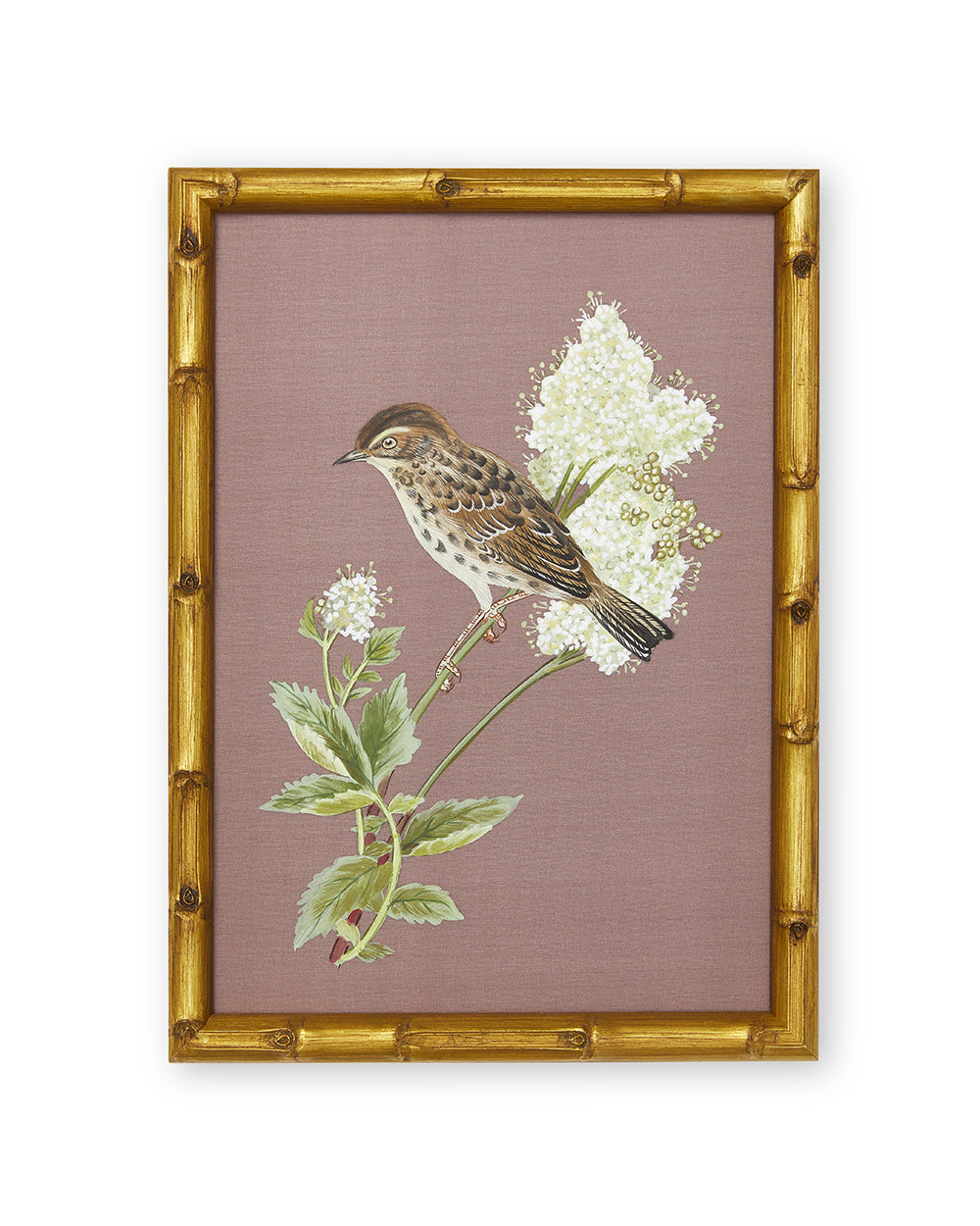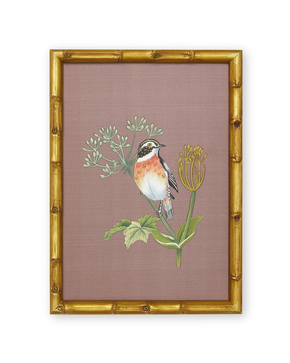 This series of original bird paintings – presented in gilded bamboo frames – is our homage to the great Giuseppe Castiglione, an Italian Jesuit missionary who served as an artist at the imperial court in 18th-century China. Giuseppe pioneered the fusion of European and Chinese traditions, a theme very close to our hearts here at Fromental.