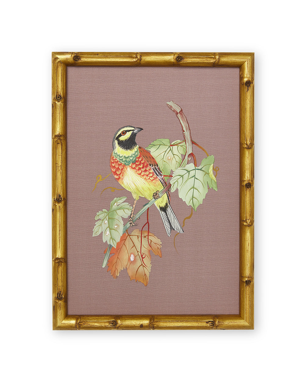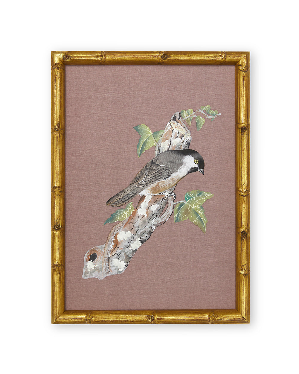 This series of original bird paintings – presented in gilded bamboo frames – is our homage to the great Giuseppe Castiglione, an Italian Jesuit missionary who served as an artist at the imperial court in 18th-century China. Giuseppe pioneered the fusion of European and Chinese traditions, a theme very close to our hearts here at Fromental.