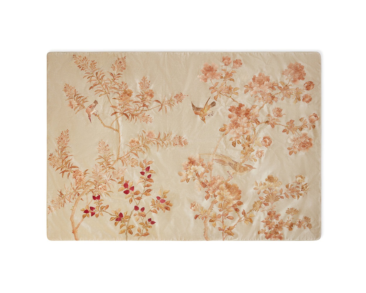 Based on a section of a traditional Chinoiserie scenic, which we have hand-painted into velvet, these one-of-a-kind pieces blur the lines between soft furnishings and fine art.