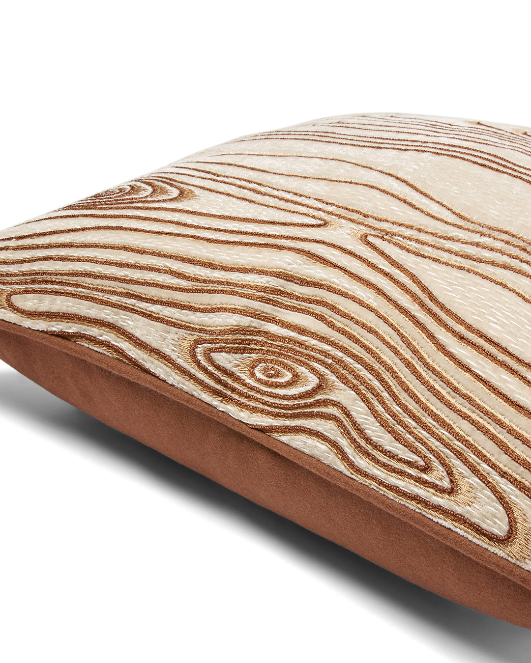 A background of cream silk velvet plays host to details in shades of chestnut, lending contrast and definition to our Woodgrain design.